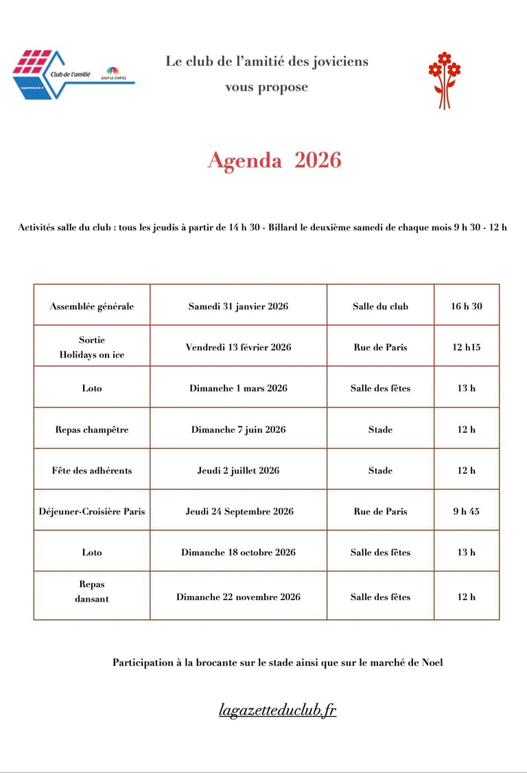 Ouvert à tous, le Club de l’Amitié des Joviciens réunit les seniors et toutes celles et ceux qui souhaitent partager des instants de convivialité dans une ambiance amicale.